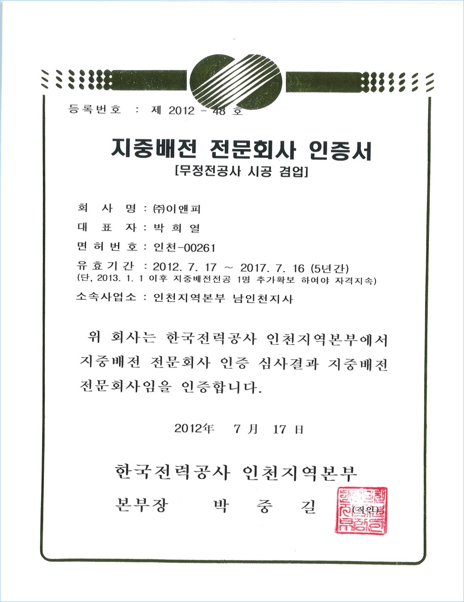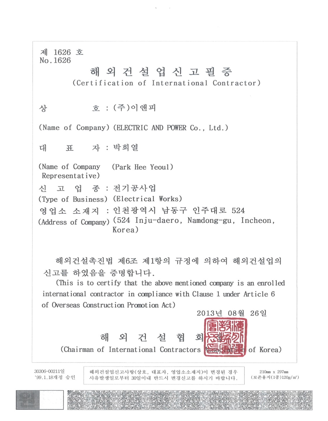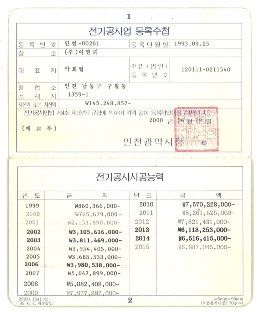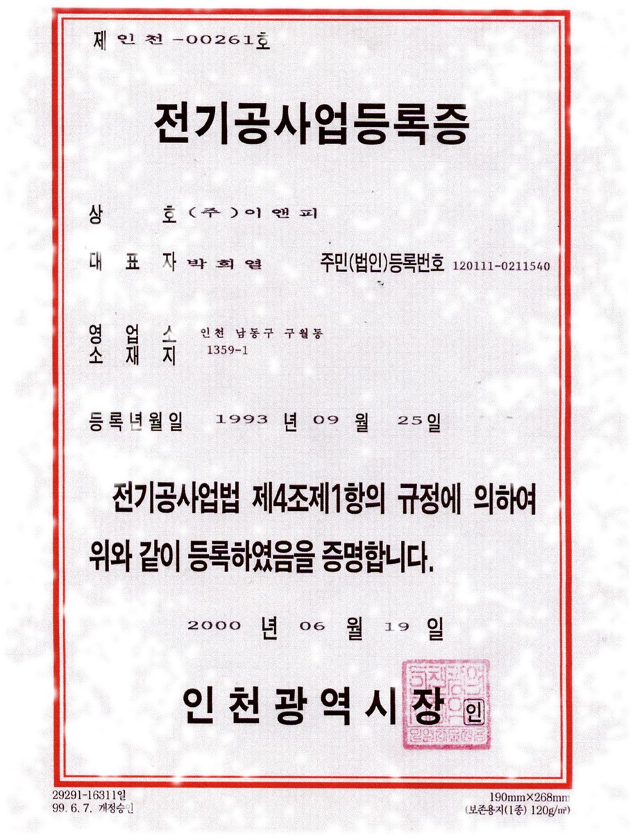 Àü±â°ø»ç¾÷ µî·ÏÁõ