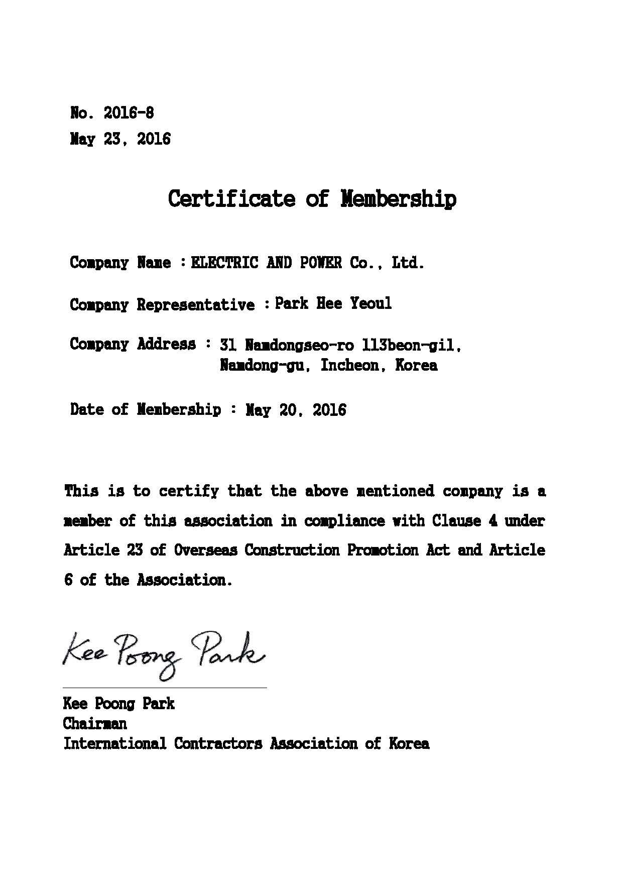 ÇØ¿Ü°Ç¼³Çùȸ °¡ÀÔÁõ¸í¼(¿µ¹®)